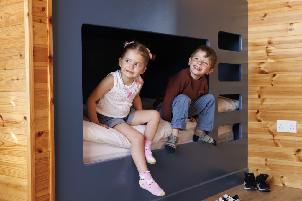 Rest easy on our comfortable single bunk beds and spacious double bed, with additional sleeping space available on the pull-out corner sofa bed. Freshen up in the en suite bathroom, complete with a shower, toilet, and hand basin, ensuring privacy and convenience.